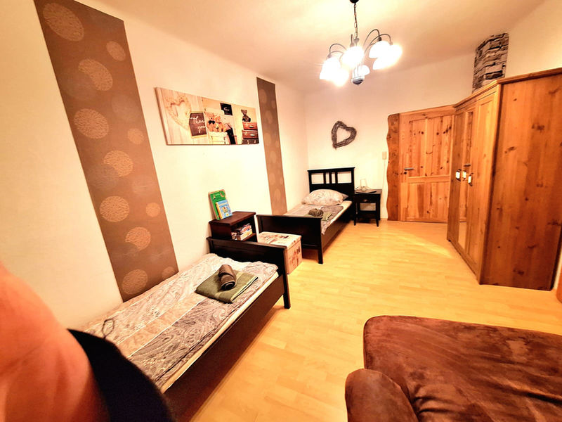 - 2 Schlafimmer mit einem Doppelbett und zwei Einzelbetten